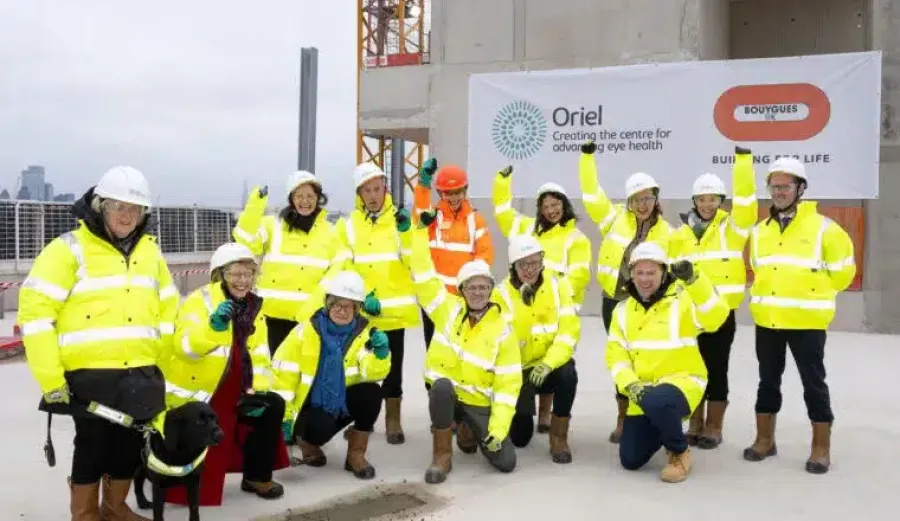 The event marked completion of the concrete structure of the new centre for advancing eye health, in St Pancras, Camden.