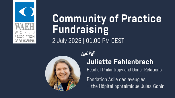Would you like to know more about fundraising in eye hospitals worldwide? Please join the CoP – Fundraising, which will bring together fundraising professionals worldwide to exchange experiences, share best practices, and explore strategies to strengthen sustainable fundraising in eye care.