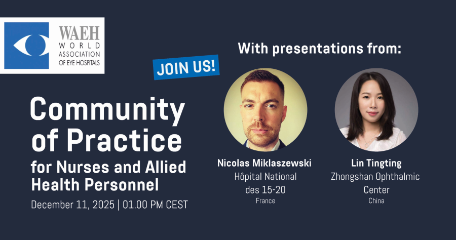 On 11 December 2025, the World Association of Eye Hospitals (WAEH) hosted its final Nursing & Allied Health Community of Practice meeting of the year, bringing together eye care professionals from more than 20 countries. The session highlighted how global collaboration directly transforms clinical practice.