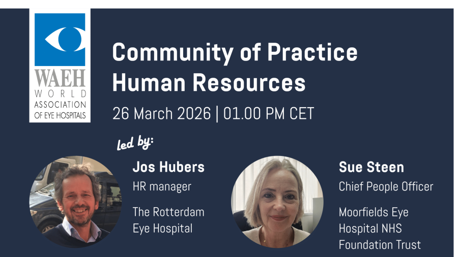 The Community of Practice – Human Resources will come together again on 24 September 2026, as part of WAEH’s ongoing programme of Communities of Practice on key topics in eye hospital management.